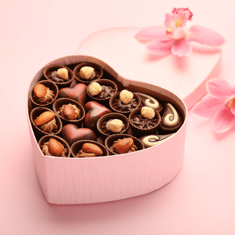 Oodles of Chocolates offers a box of four handcrafted inclusion hearts, made with love and plenty of chocolate.