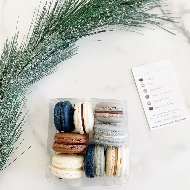 - For us, it wouldn’t be the holidays without the Rocher Mini Macaron Cake from Ollia Macarons and Tea. It will add the desert glam to any holiday party.